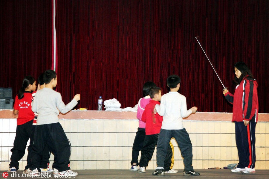 运动员们场上每一分钟比拼的背后,是凝聚了艰苦训练的心血。从概率上讲,以美国为例,一个十七八岁的运动员想要入选奥运篮球比赛,需要战胜45487个同龄选手;一个田径运动员需要至少比8778个选手更优秀才能竞逐于奥运赛道;女子体操运动员备战奥运的几率稍微高一点,但也是2000人里挑一的高手。夺取奥运冠军就更困难了。更多运动员在训练之路上遭遇挫折、伤病,最终无缘奥运,有的甚至提早结束了体育生涯或者失去了人生方向。更快、更高、更强是奥运精神,但是这不仅仅适用于竞技体育,在全民体育方面亦然。奥运征途充满艰辛与挑战,然而“生活中重要的不是凯旋而是奋斗”。正如奥林匹之父顾拜旦所言,“更快,更高,更强”的“精髓不是为了获胜而是使人类变得更勇敢、更健壮、更谨慎和更落落大方。”图为2009年2月27日,福建泉州击剑培训学校,学员们正在跟着教练做基础训练。