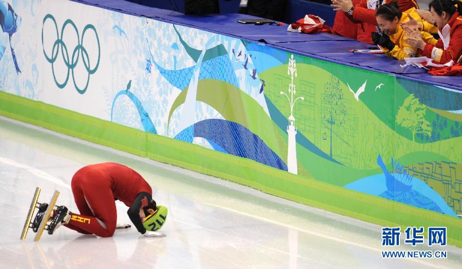 图为2010年2月17日,中国选手王濛在冲过终点线后感谢教练李琰(右二)等。王濛在2010温哥华冬奥会短道速滑女子500米决赛中获得金牌,成功卫冕。在本届冬奥会上,王濛一人包揽3枚金牌,成为获得冬奥会金牌、奖牌最多的中国运动员。