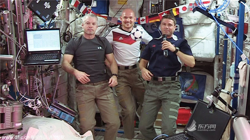 全世界的球迷正在为四年一度的足坛盛事疯狂,距离地球400公里外的太空中,三名“来自星星的球迷”美国宇航员史蒂夫·斯旺森(Steve Swanson)、里德·怀斯曼(Reid Wiseman)和德国宇航员亚历山大·格斯特(Alexander Gerst)也不例外。26日德国和美国队小组最后一轮生死战,他们曾打赌力挺自己的国家队。结果德国队1比0获胜,两队携手晋级淘汰赛,意味着美国指挥官和飞行工程师输了赌局,不得不剃掉头发。按照赌注,如果美国队赢了球,格斯特将在已经光光的头顶画上美国国旗。(来源:东方IC 未经许可不得转载) >>>点击进入2014世界杯专题页面