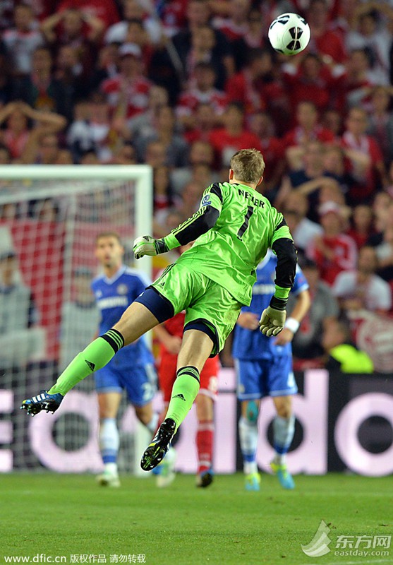 当地时间2013年8月30日,布拉格,2013年欧洲超级杯,拜仁慕尼黑7-6切尔西。诺伊尔头球解围。(来源:东方IC 未经许可不得转载) >>>点击进入2014世界杯专题页面