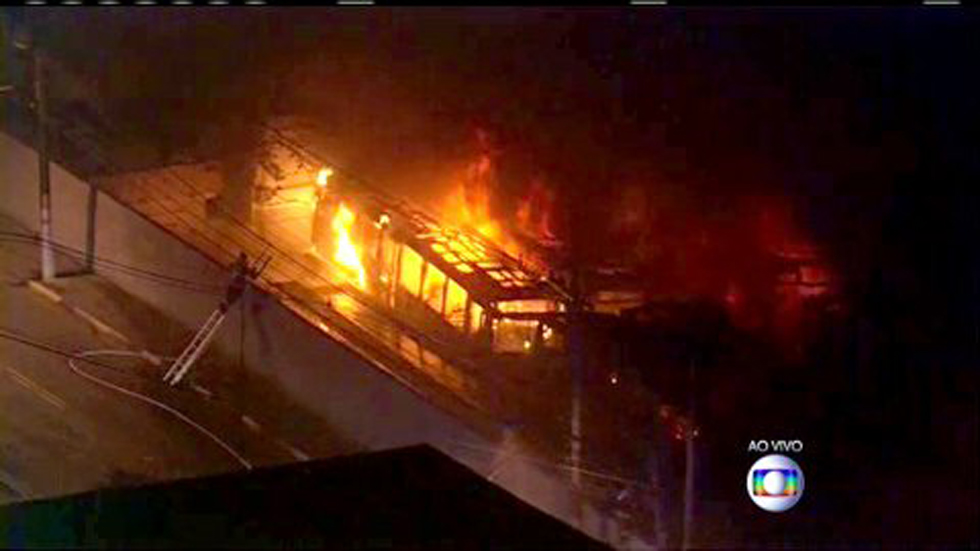 据悉,当晚7点20分左右,圣保罗市市区一处公交车站内的20辆公交被点燃,19辆公交被完全烧毁,一辆公交车部分车体被烧。 <<<<点击进入2014年巴西世界杯专题