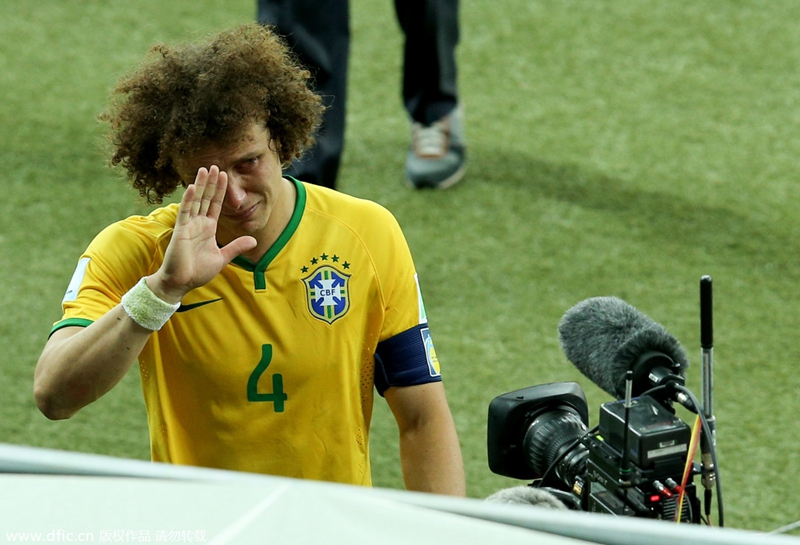 当地时间2014年7月8日,贝洛奥里藏特米内朗体育场,2014巴西世界杯半决赛,巴西1-7德国。赛后,未能在主场挺进决赛的巴西球员痛哭。 >>>>点击进入2014巴西世界杯专题页面