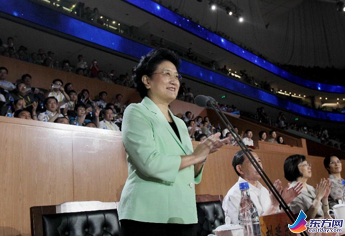 2014年7月28日晚的黄浦江畔,见证了一场青春的聚会。当晚,中华人民共和国第十二届学生运动会开幕式在上海东方体育中心精彩上演。一张张热情洋溢的脸庞、一次次超越自我的努力,以运动为名,以阳光塑心,身体与心灵都奔跑在追逐梦想的道路上。(图为:中共中央政治局委员、国务院副总理刘延东)