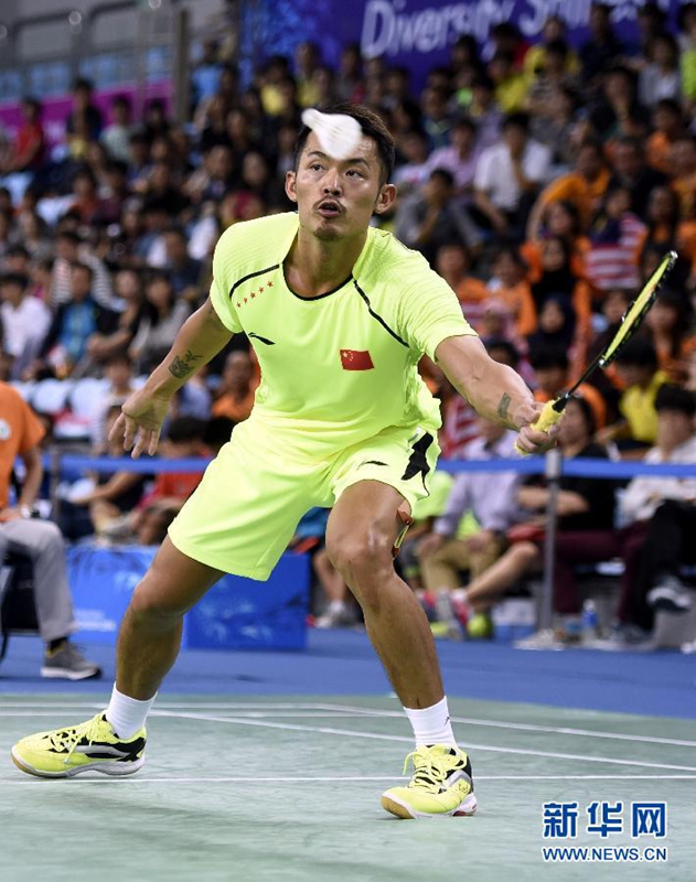 9月28日,中国选手林丹庆祝胜利。当日,在2014仁川亚运会羽毛球男单半决赛中,林丹以2比1战胜马来西亚选手李宗伟,晋级决赛。
