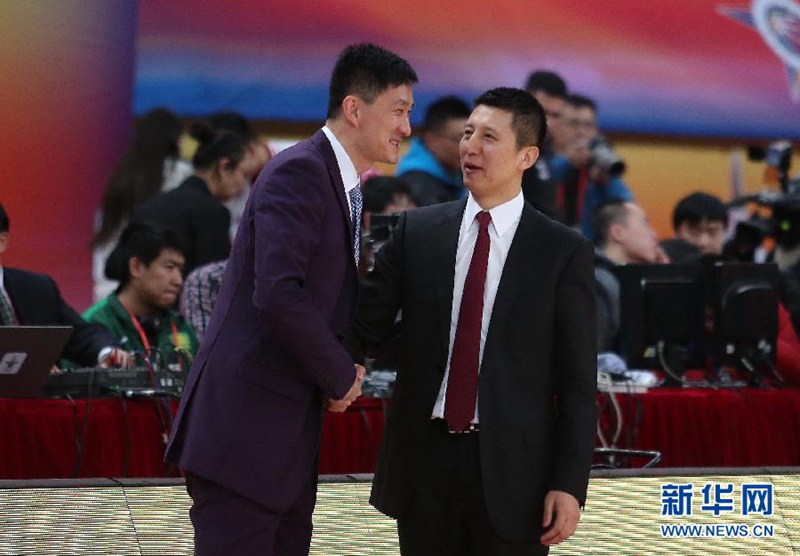 1月18日,南方队主教练杜锋(左)和北方队主教练郭士强在比赛后握手。