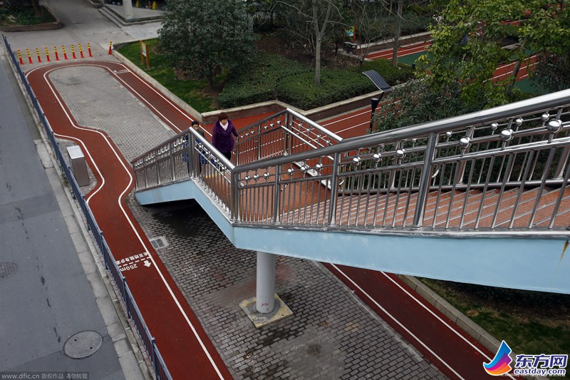 2015年2月24日,上海,近日,一条318米的健身步道亮相位于延安中路和瑞金一路交界处,给这块绿地带来了新活力,为附近的社区居民创造跑步锻炼的条件。