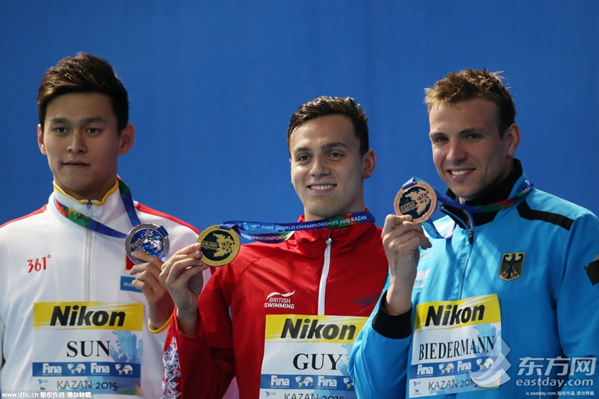 北京时间8月4日晚,在俄罗斯喀山进行的2015年世界游泳锦标赛结束了男子200米自由泳决赛争夺,中国选手孙杨在150米时一度领先,但在冲刺阶段,盖伊后来居上夺冠,孙杨遗憾夺得银牌。