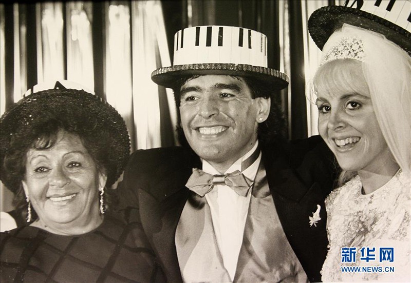 马拉多纳是绿茵场上的传奇,也是足球史上最具争议的球员之一。图为1989年11月8日,马拉多纳(中)在婚礼上与时任妻子比利亚法内(右)、母亲达尔马合影。
