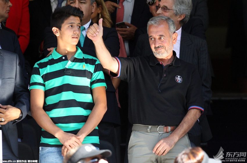 日前,西班牙马德里,15/16赛季西甲第4轮,皇家马德里1-0格拉纳达。被匈牙利女记者绊倒的奥萨马-莫森一家受邀观战皇马比赛,小儿子萨义德担任C罗的球童。