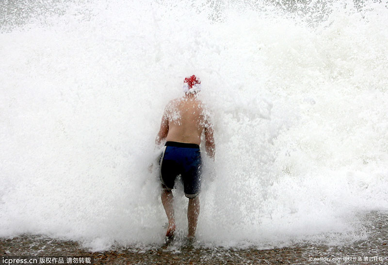 当冬泳遇上圣诞,爱好冬泳的西方人都嗨翻了。各路“牛鬼蛇神”都以圣诞老人的姿态出没于海边,与严寒对抗,享受冬泳乐趣。不得不感叹西方人强壮的体质是靠“自虐”得来的。