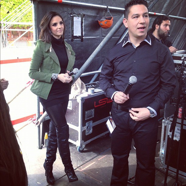 卡卡娇妻绿色上衣助兴演唱会 尽显优雅淑女范