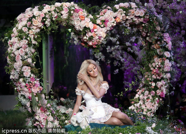 雏妓门女主角参加巴黎时装周 一袭白衣有如天女徜徉花海