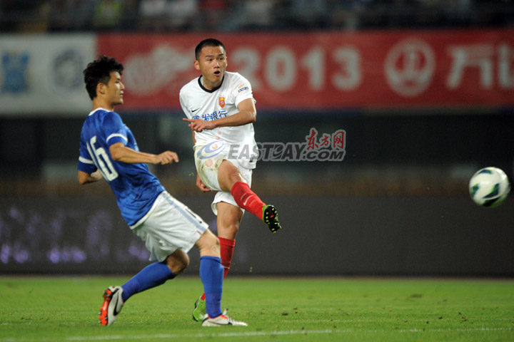 | 6月2日晚,2013中超联赛第12轮在上海源深体育场展开一场较量,由申鑫迎战同城对手上港。最终,凭借武磊的帽子戏法以及两次助攻,上港在遭遇联赛5连败后,以一场6比1的大胜走出阴霾。吕文君梅开二度,朱峥嵘也收获进球。申鑫队方面则由王赟打进1球。(来源:东方网