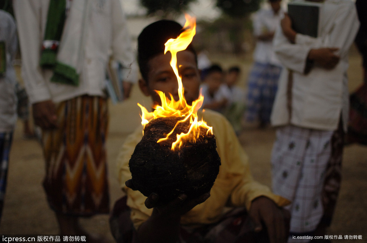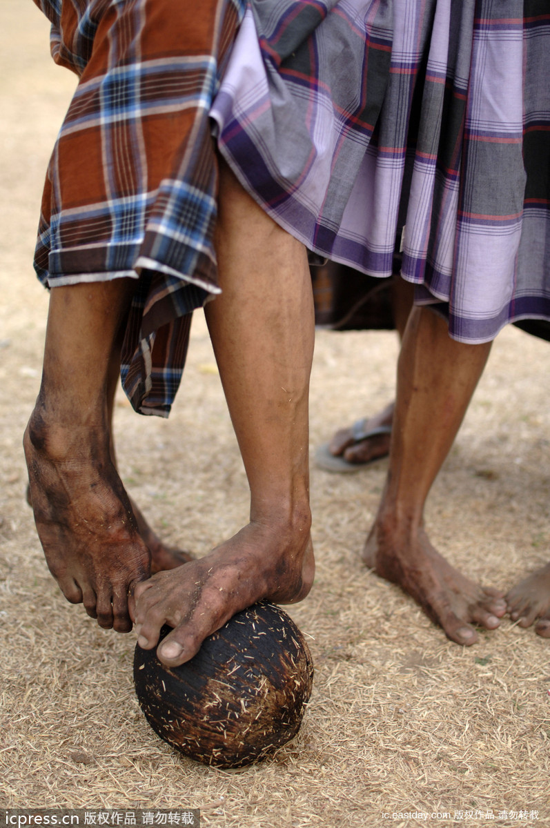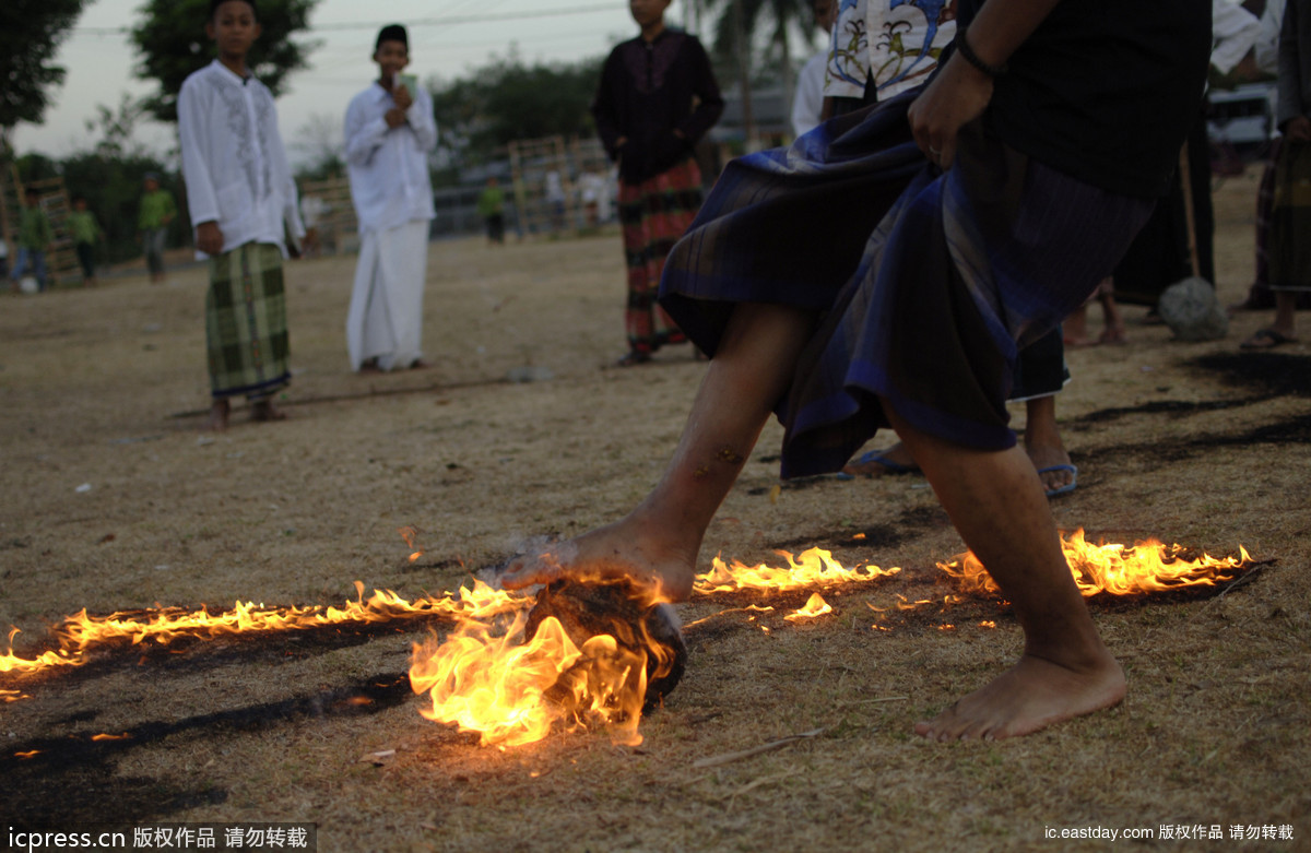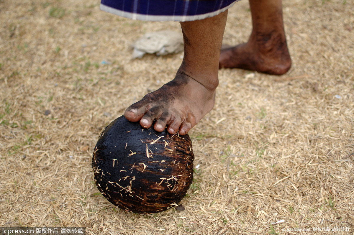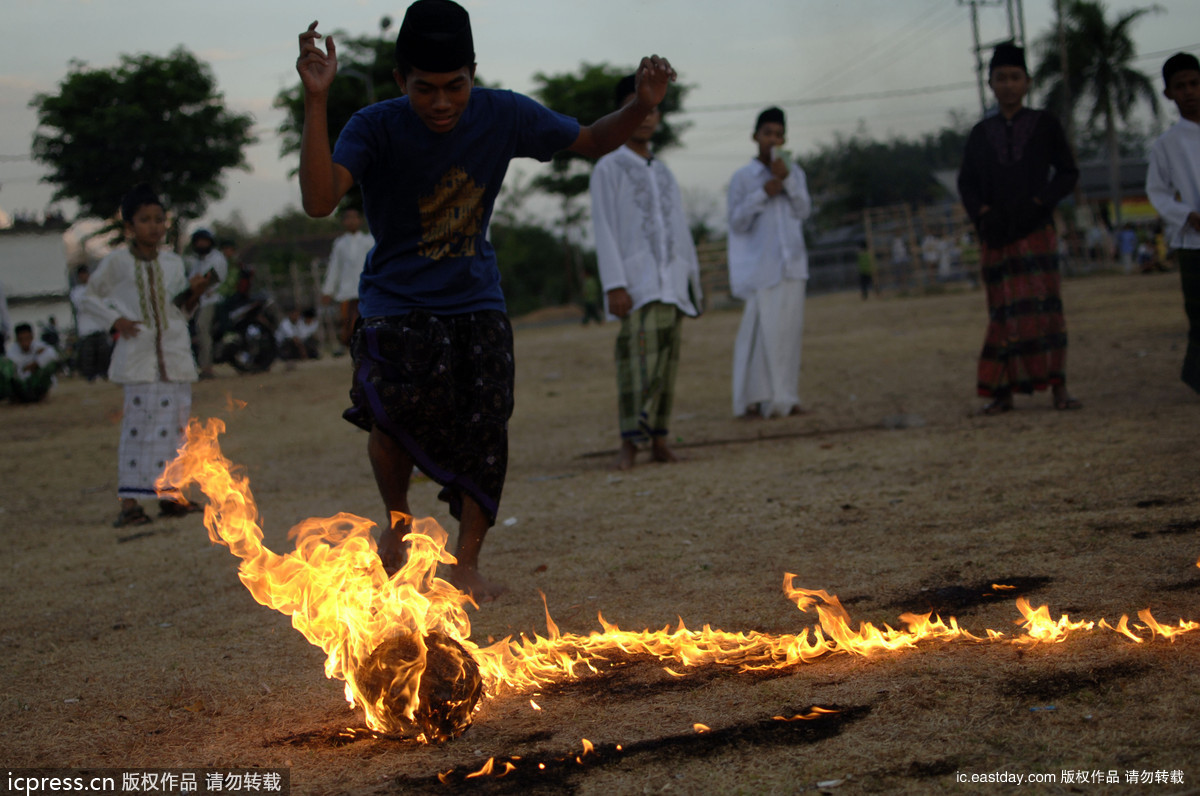| 在印尼东爪哇的一些寄宿制学校里,一项名为“火球”的运动格外流行。比赛规则与五人制足球相似,不过参加的学生需要赤脚踢炙热的火球60分钟。制成“火球”的原材料是椰子,在煤油中浸泡2天后点火即可使用。据悉,“火球”运动是为了考验学生的胆量和忍耐力。(来源:东方IC未经许可不得转载