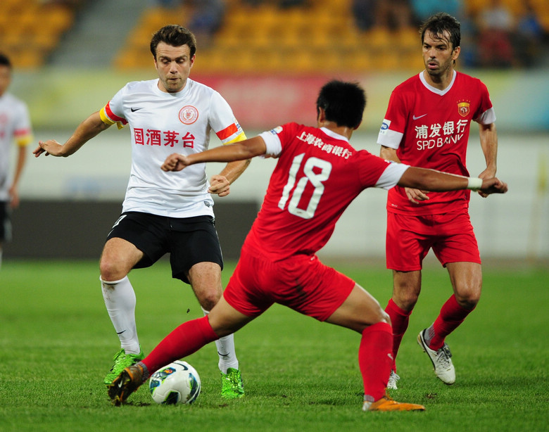 | 7月14日,上贵州人和队球员米西莫维奇(中)在比赛中。当日,在2013年中国足球超级联赛第17轮比赛中,贵州人和队主场以0比3不敌上海上港队。(来源:新华社)[!--empirenews.page--]