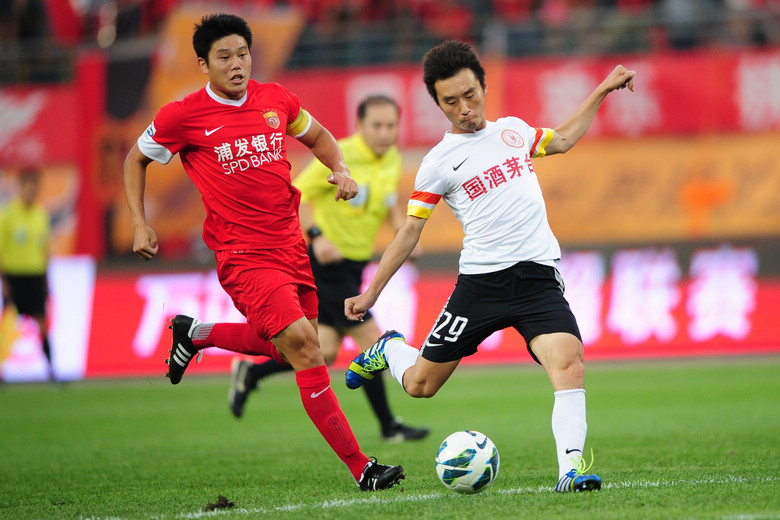 | 7月14日,贵州人和队球员米西莫维奇(左)在比赛中突破。当日,在2013年中国足球超级联赛第17轮比赛中,贵州人和队主场以0比3不敌上海上港队。(来源:新华社)[!--empirenews.page--]