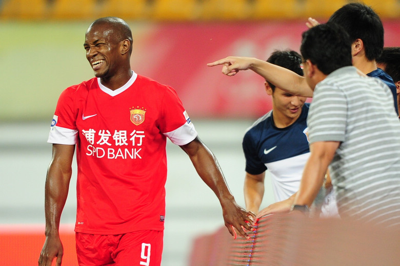 | 7月14日,上海上港队球员麦克布雷恩在进球后庆祝。当日,在2013年中国足球超级联赛第17轮比赛中,贵州人和队主场以0比3不敌上海上港队。(来源:新华社)[!--empirenews.page--]