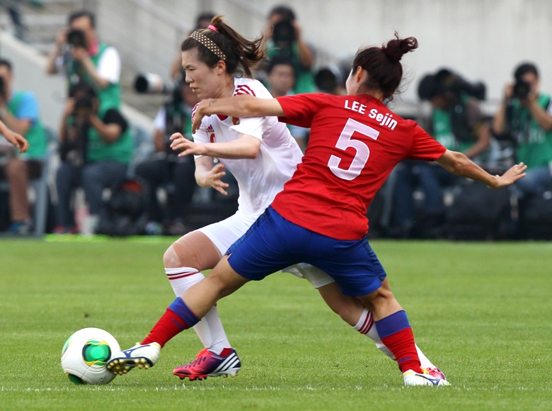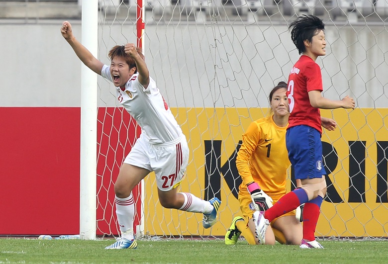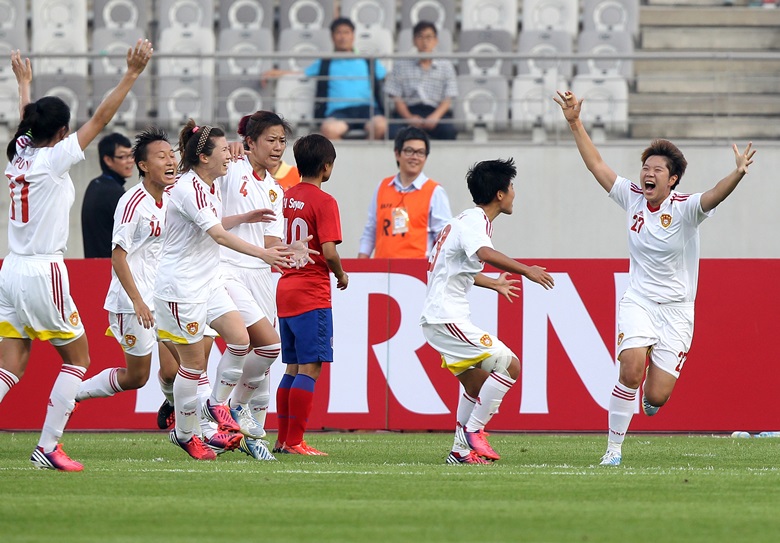 | 东方网7月24日消息:7月24日下午,在2013年东亚杯足球赛女子组第二轮比赛中,中国队以2比1战胜韩国队。(来源:新华社