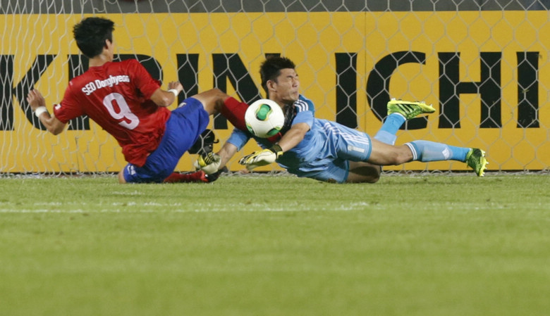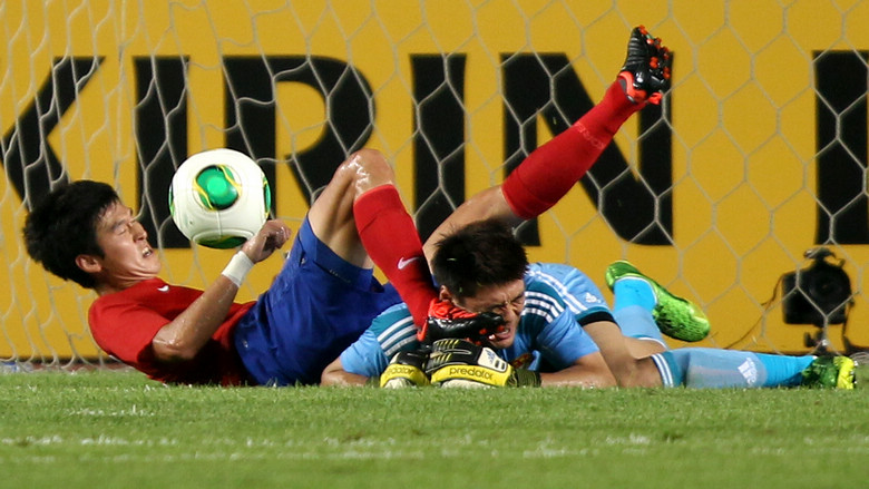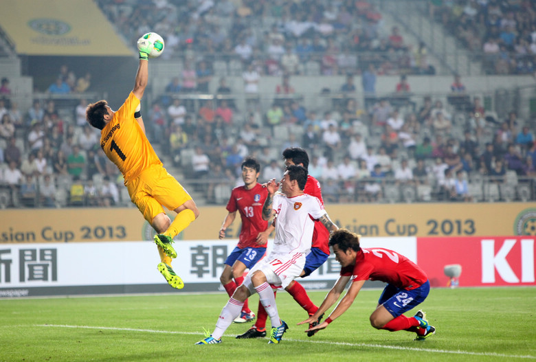 | 北京时间7月24日19点,2013年东亚杯继续展开第二轮争夺。中国队在华城体育场与东道主韩国队交锋。第39分钟,张琳芃禁区内摆脱防守后可惜没有打门,错失良机。曾诚半场四次扑救化解险情。下半场曾诚又是多次化解险情。第81分钟,杨昊远射完成国足第一脚打门。90分钟战罢,中国队0-0打平韩国队,东亚杯两连平。(来源:新华社)