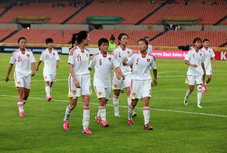 | 7月27日,中国女足队员在比赛后。当日,在韩国首尔进行的2013年女足东亚杯比赛中,中国女足以0比1不敌朝鲜女足。(新华社发