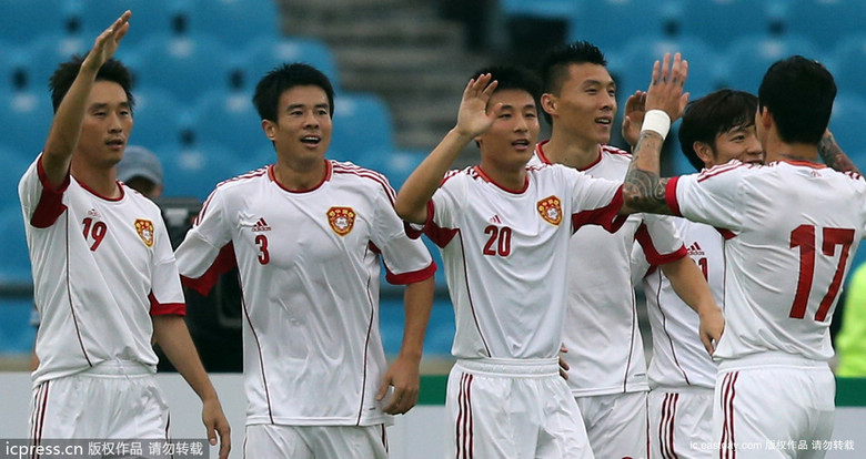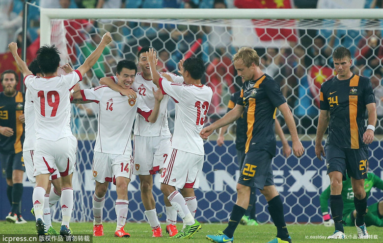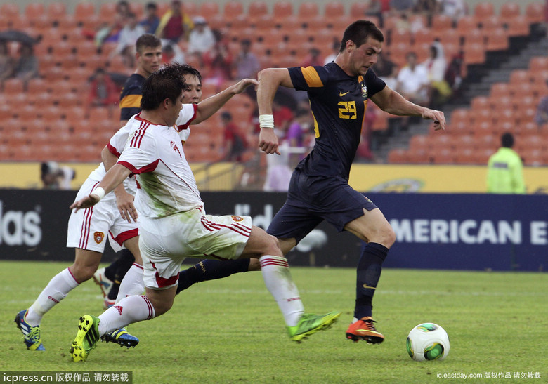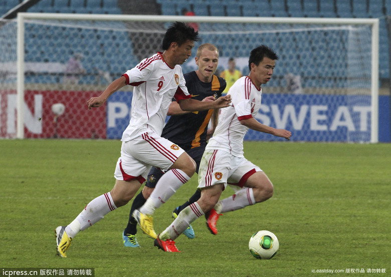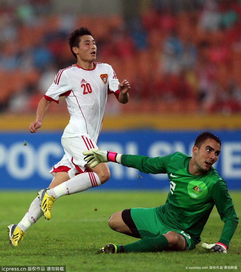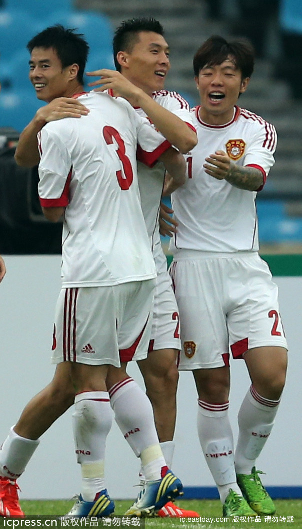 | 东方网7月28日消息:7月28日16点15分,2013年第5届东亚杯第3轮的首场比赛,在韩国首尔蠶室体育场展开争夺,中国男足对阵澳大利亚男足。经过90分钟的激战,中国男足4-3获胜。(来源:东方IC