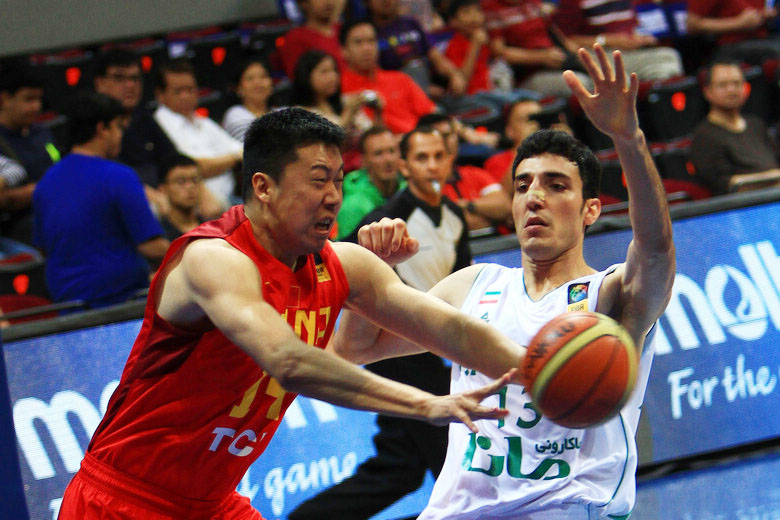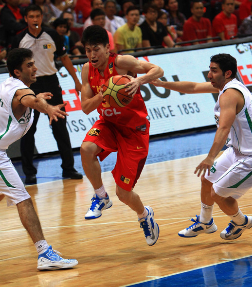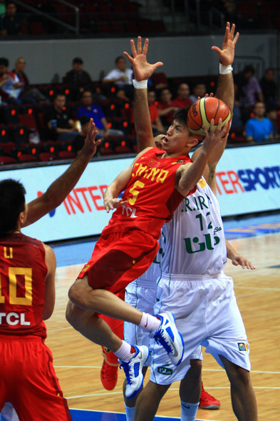 | 8月3日,中国队球员王仕鹏(中)在比赛中带球突破。当日,在菲律宾进行的第27届男篮亚锦赛小组赛中,中国队以51比70不敌伊朗队。(来源:新华社)[!--empirenews.page--]