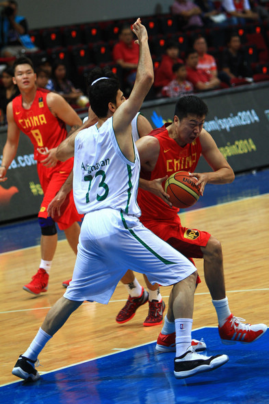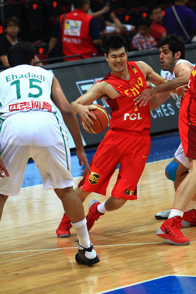| 8月3日,中国队球员王治郅(左)在比赛中进攻受阻。当日,在菲律宾进行的第27届男篮亚锦赛小组赛中,中国队以51比70不敌伊朗队。(来源:新华社)[!--empirenews.page--]
