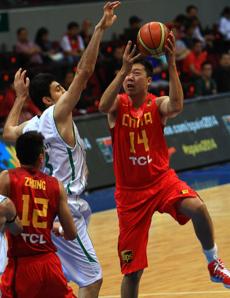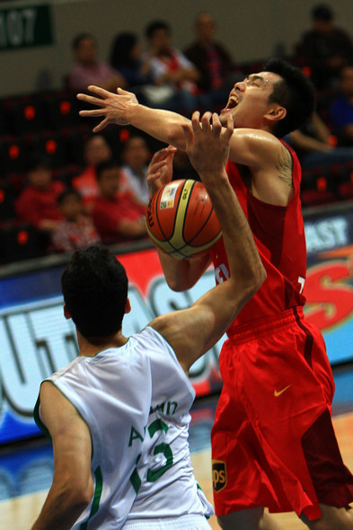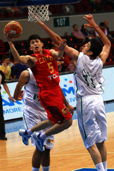 | 8月3日,中国队球员刘晓宇(中)在比赛中上篮。当日,在菲律宾进行的第27届男篮亚锦赛小组赛中,中国队以51比70不敌伊朗队。(来源:新华社)[!--empirenews.page--]