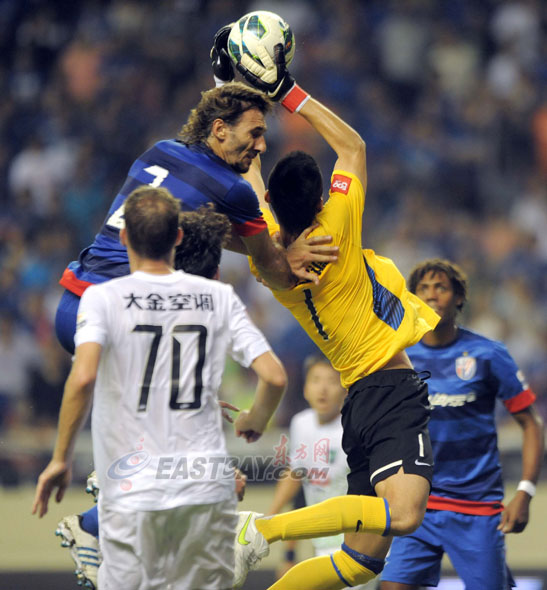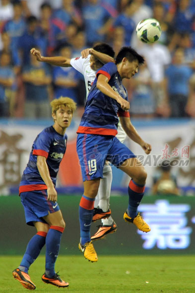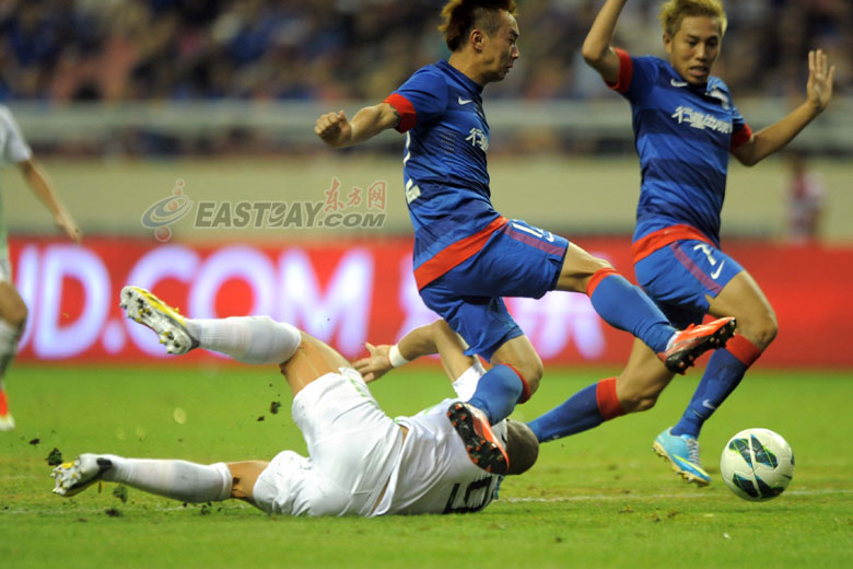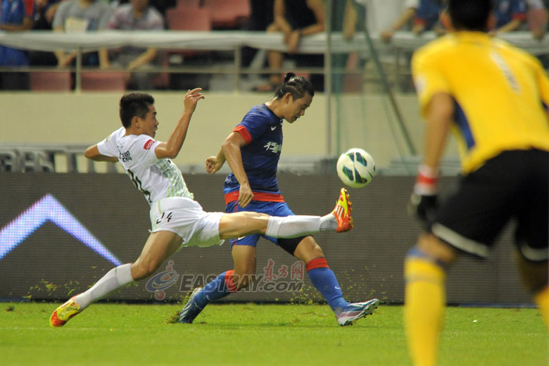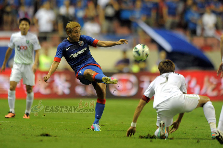 东方网8月5日消息:北京时间8月5日晚19点45分,2013年中超联赛第19轮上海申花主场迎战杭州绿城的比赛在上海虹口体育场比赛开始,第83分钟邱盛炯在禁区外手球犯规,绿城右路任意球送到禁区,邱盛炯击球不远,金东进转身传中,大黑将志门前抢射得分。最终杭州绿城客场1比0战胜上海申花。(来源:东方网