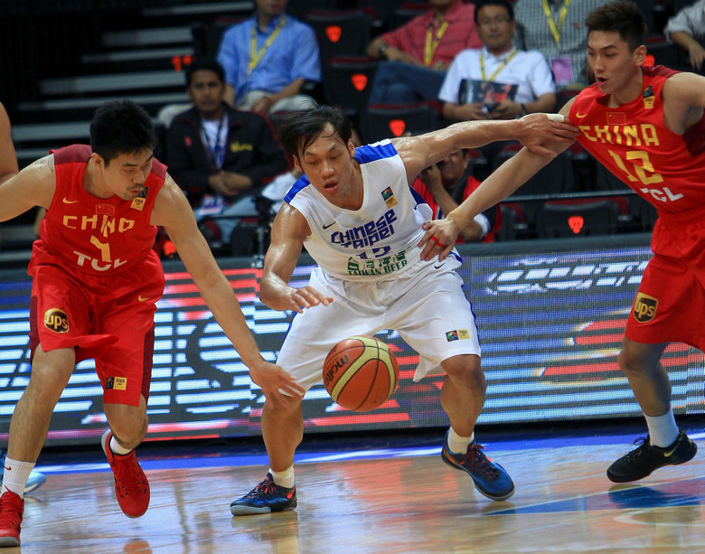 | 8月9日,中华台北队球员林志杰(中)在比赛中拼抢。当日,在菲律宾举行的第27届男篮亚锦赛四分之一决赛中,中国队以78比96不敌中华台北队,无缘四强。(来源:新华社)[!--empirenews.page--]