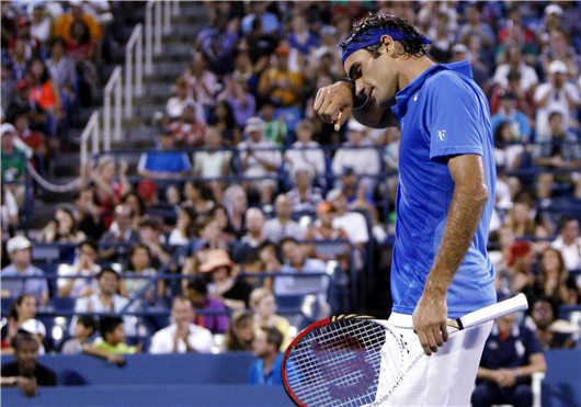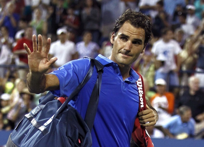 | 北京时间9月3日,在2013年美网男单第四轮比赛中,西班牙选手罗布雷多以3比0战胜瑞士选手费德勒,晋级男单八强。图为费德勒泪别赛场。