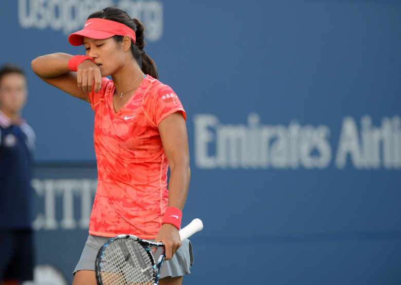 | 9月6日,李娜在比赛中。当日,在2013年美国网球公开赛女子单打半决赛中,中国选手李娜以0比2不敌美国选手小威廉姆斯,无缘决赛。(来源:新华社)[!--empirenews.page--]