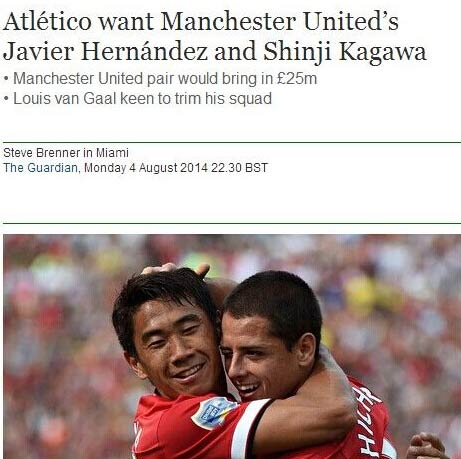 随着曼联3-1战胜利物浦,曼联今夏的美国行也告一段落。虽然取得了国际冠军杯的冠军,但范加尔仍要清洗不符合自己要求的球员。其中,香川和埃尔南德斯的位置最为尴尬,不过这两名球员已经收到了西甲冠军马竞的邀请。