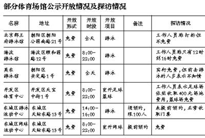 新京报讯 昨天是第六个全国“全民健身日”,根据北京市体育局的部署,各区县多家公共体育设施承诺当日免费向社会开放,并公示了开放的时段和内容。