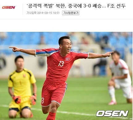 “打进一球的朝鲜队并没有放弃进攻的势头,他们全场坚持进攻这一战术理念,中国队只有少许的反击机会。比赛胜利的天平也倾向了北朝鲜这支球队,朝鲜离胜利越来越近。下半场比赛第11分钟的时候,朝鲜已经3-0领先了,中国虽然希望扳回比分,但是真实情况是他们在比赛中节节败退,朝鲜不允许比赛胜利从他们手中溜走。最终,朝鲜3-0完胜,这支球队也成为了比赛的黑马。” 《OSEN》继续说道。