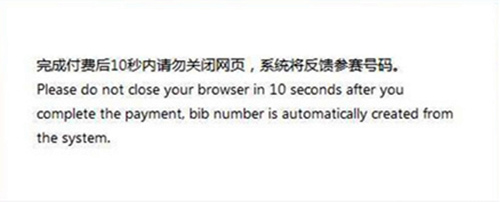 最后需要特别注意!!支付成功后一定要等待官网生成参赛号码后才能关闭页面,否则会出付了钱却没有拿到参赛号的情况!!