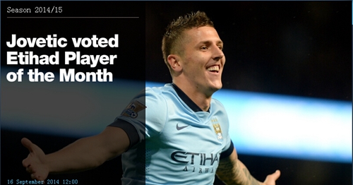 曼城官网:约维蒂奇当选曼城8月最佳球员