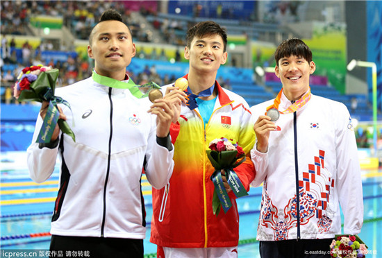9月24日,亚运会男子4×100自由泳接力决赛,中国队依靠孙杨和宁泽涛在后两棒的优异表现力压日本队夺冠,并打破了这个项目的亚洲纪录。而朴泰桓所率领的韩国接力队仅仅获得第三名的成绩,游泳开赛至今,朴泰桓没有获得一枚金牌,仅仅获得4枚铜牌,这样的结果韩国媒体十分不满。