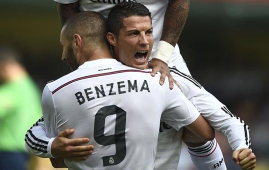 图片说明:皇马2-0比利亚雷亚尔 C罗放声咆哮拥抱本泽马