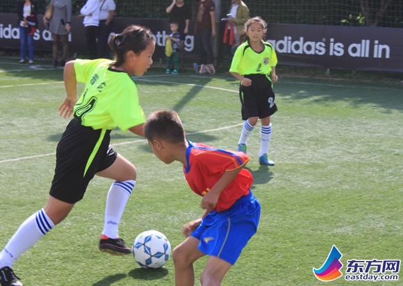 著名足球运动员孙吉、刘军来到现场,向小球员们介绍参与全运会的心得。小球员们在展示自己的球技后,进行一场趣味的男女足球对抗赛,女足的小姑娘在实力上要略胜一筹,虽然是“孩子们的游戏”,比赛却十分激烈。两方互不相让。女足姑娘的一脚爆射从小男孩头顶窜入球门,非常精彩。