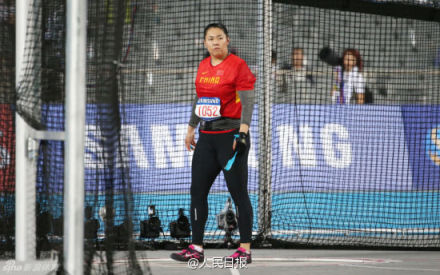 图片说明:中国女子链球选手张文秀在比赛现场。