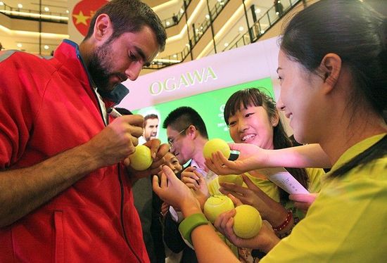 10月6日,在2014上海劳力士大师赛男子单打第一轮比赛中,新科美网冠军、克罗地亚选手马林西里奇鏖战三盘以1:2不敌同胞卡洛维奇,意外爆冷出局,令人扼腕。10月7日,西里奇不惧失利困扰,大气现身上海梅龙镇广场与粉丝进行亲密互动,近距离展示网坛名将风采。