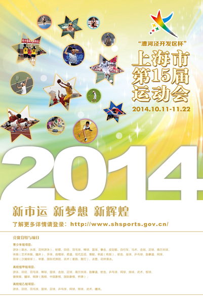 两款海报都以缤纷旋风为背景,色彩鲜明、律动感强,富有艺术感染力和视觉冲击力,象征着上海青少年的朝气蓬勃,申城学校体育的多姿多彩。首幅海报侧重强调市运会是发现和培养竞技体育后备人才的重要平台,借会徽的“星”元素,烘托足篮排三大球、游泳田径两大母项上冉冉升起的新星,并以“新市运、新梦想、新辉煌”的主题,凸显了本届市运会“改革创新”的主基调。另一幅海报中的绚丽背景第一时间抓住眼球,鲜明的色彩、张扬的青春,满满都是青少年对生活的热情和对梦想的向往,一句“追逐梦想、超越自我”,将引领他们开启健康、欢快的运动之旅,培养一种良好的健身习惯。 上海市第十五届运动会将于10月11日至11月22日举行。本届市运会创新竞赛制度,突出人才培养,紧扣时代背景,营造发展氛围,将进一步推动本市体教结合工作,推进学校体育“课内课外”全面展开,促进青少年身心健康、体魄强健。