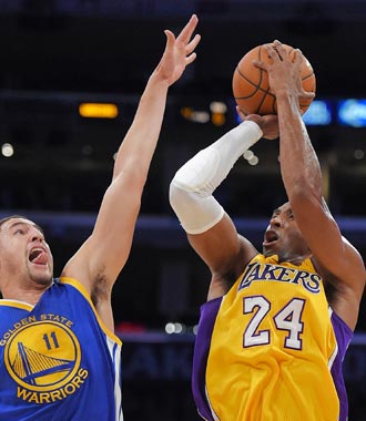 今天这场球,是湖人众将首次在主场观众面前亮相。面对强大的勇士,斯科特教练的主要思路还是练兵。伤愈复出的科比连续第二场首发出战,并且在总共出战的两节比赛中,11投5中,得到15分3助攻2篮板3抢断。