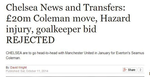 西姆斯-科尔曼现年26岁,爱尔兰国脚,2009年来到埃弗顿,经过短暂适应后,坐稳太妃糖右后卫的主力位置,过去五个赛季,科尔曼各项赛事代表埃弗顿出场143次,攻入16球,其中上赛季36场英超联赛攻入6球,凭借着出色的表现,挤进英超年度最佳11人。新赛季,科尔曼延续着出色的表现,各项赛事出场5次,贡献2球1助攻,展示出强大的边路进攻能力。英国媒体《每日快报》指出,除了切尔西外,曼联对西姆斯-科尔曼也非常感兴趣。除了加强右后卫外,切尔西还打算给特里找一个合适的接班人。