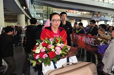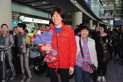 昨日下午,刚刚在意大利世锦赛获得亚军的中国女排姑娘们回京。在首都国际机场,主教练郎平被球迷和记者团团围住,同机回来的郎平爱女白浪拿着手机玩起自拍。