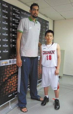 图片说明:与两米多的大个儿相比,富坚勇树(右)显得很袖珍。