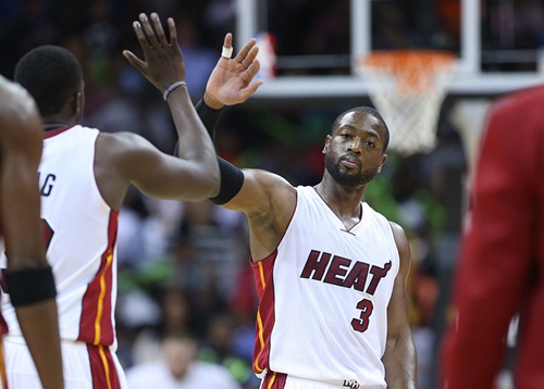 热火首发阵容:波什、肖恩-威廉姆斯、卢尔-邓、韦德、科尔。