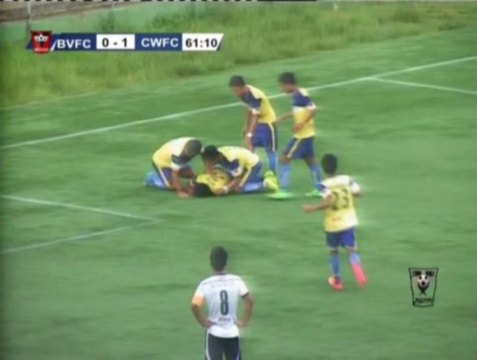 根据印度时报的消息,印度超级联赛在东北部进行一场比赛,一位23岁的年轻球员彼得在为球队打入扳平一球,当时队友开出直接任意球击中球门横梁后弹地,埋伏 在禁区内的彼得补射入网,彼得非常兴奋,一个侧手翻后紧接一个空翻,模仿克洛泽在世界杯的庆祝动作,结果起跳高度不足,头部着地躺在地上。