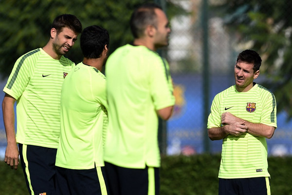 图片说明:巴萨备战欧冠比赛